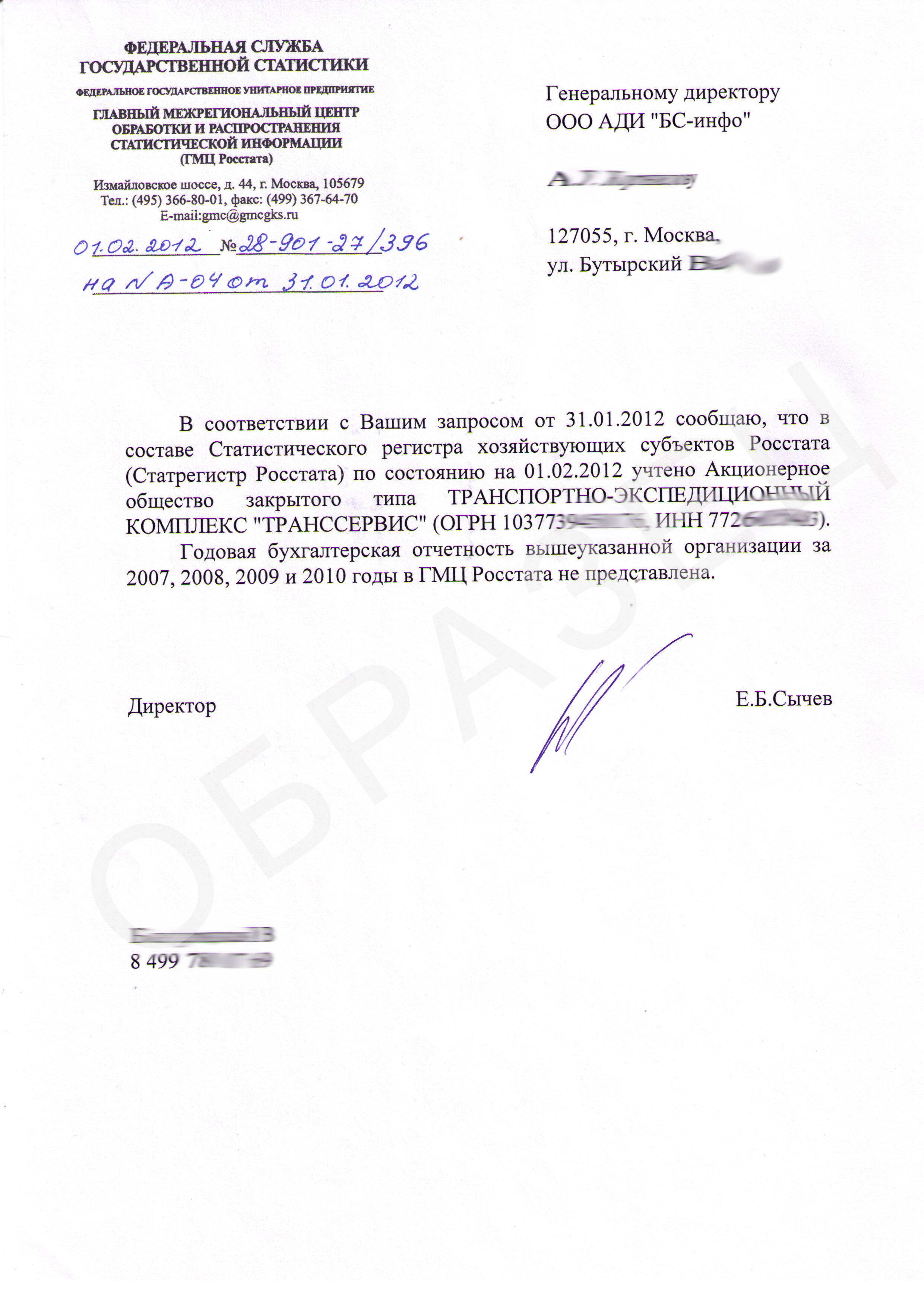 Справка о наличии (отсутствии) бухгалтерской отчётности в органах статистики Официальный документ, полученный в Федеральной службе государственной статистики, подтверждающий наличие (отсутствие) информации о бухгалтерской отчётности российской компании за определённый период в государственном реестре.