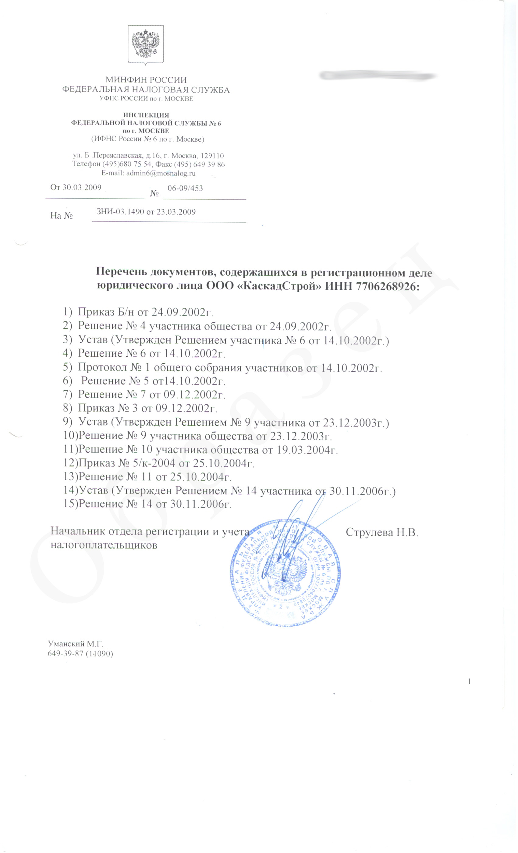 Справка о Перечне документов - официальный документ, получаемый в территориальной налоговой инспекции, содержащий список документов, находящихся в регистрационном деле юридического лица.