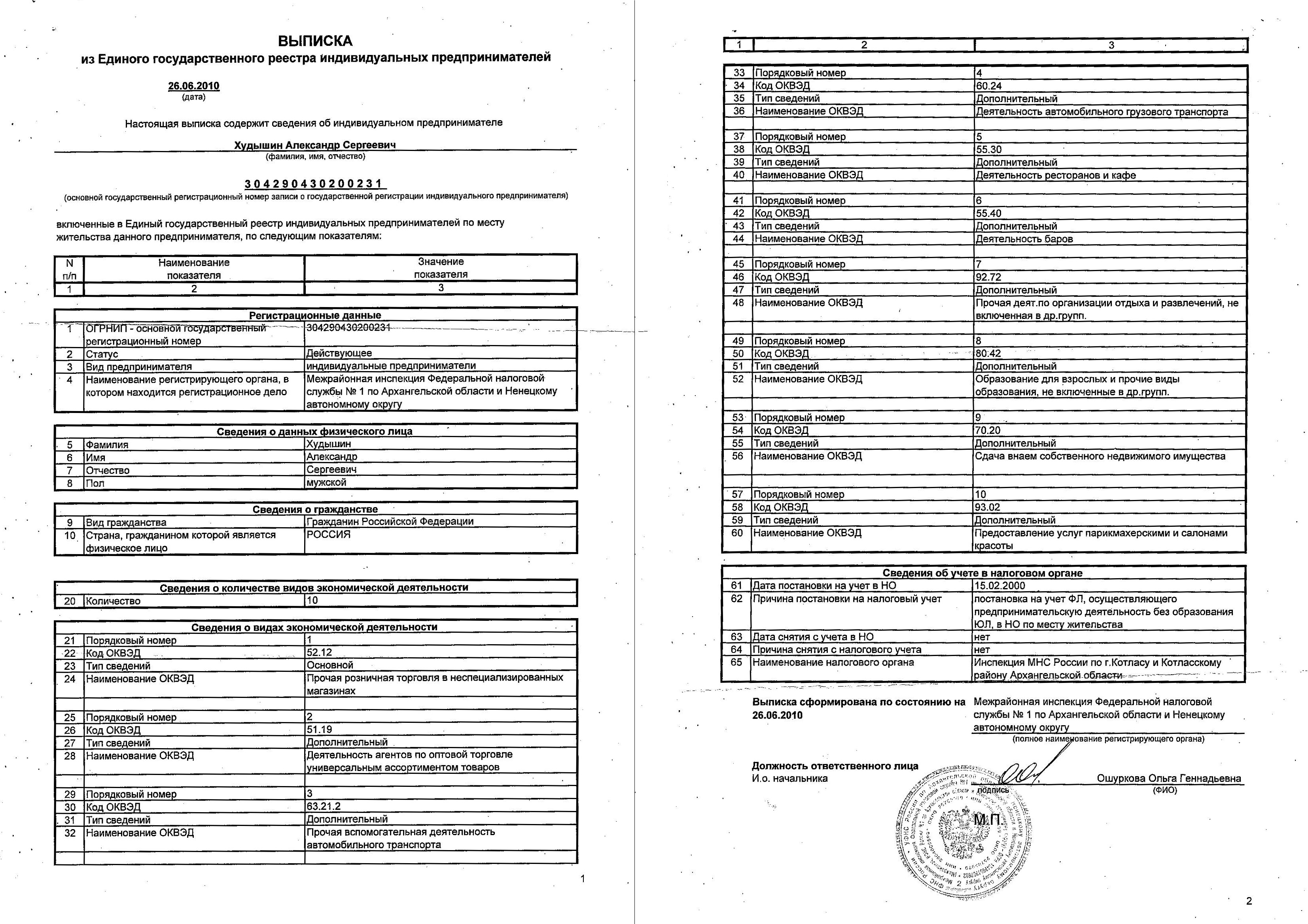 Выписка из ЕГРИП по России и СНГ, 790 рублей (все включено)